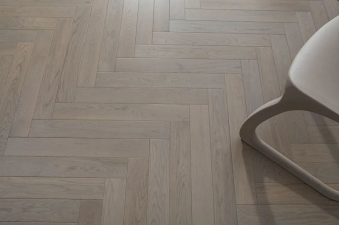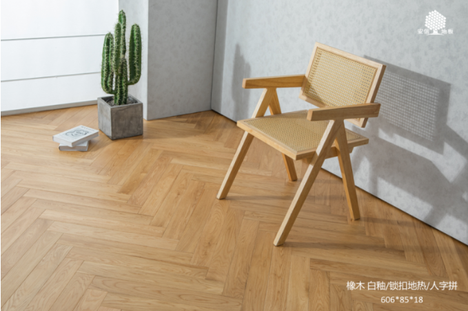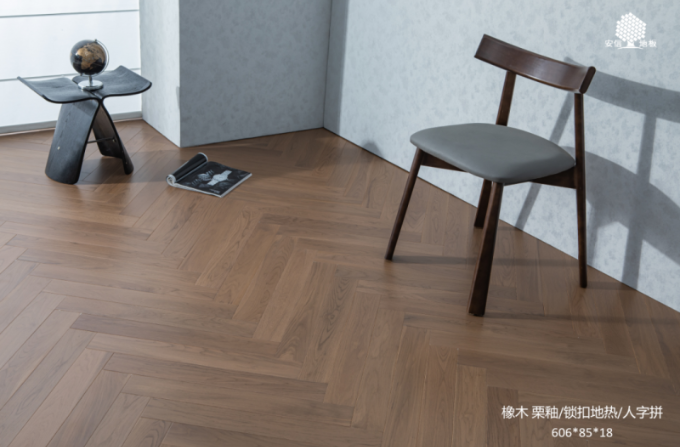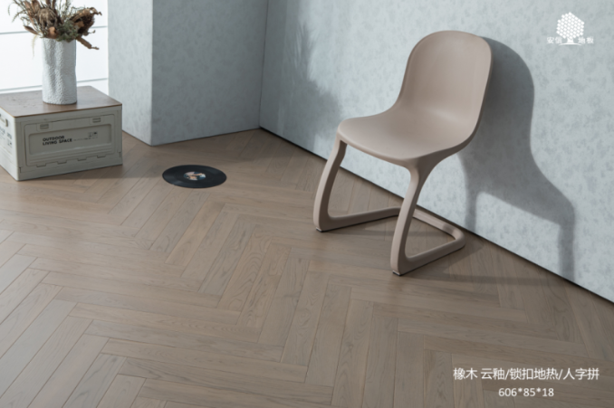 为实现釉色般的细腻质感,安信在工艺层面进行了多重突破。采用淋辊工艺处理漆面,使地板表面呈现如瓷器釉层般的柔润光泽,触感细腻温和,同时具备优异的耐磨与抗刮性能。在木材处理上,精选欧洲橡木,通过技术手段将木材纹理自然柔化,削弱了传统木纹的张扬感,形成类似宋画中水墨渲染的朦胧效果,契合了宋代美学中含蓄内敛的审美追求。